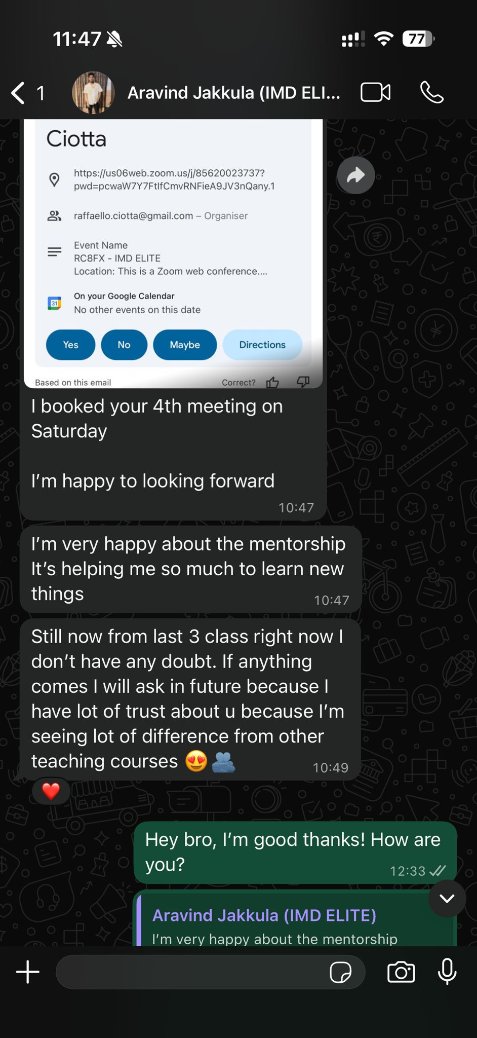 Aravind's feedback about the IMD Mentorship Program